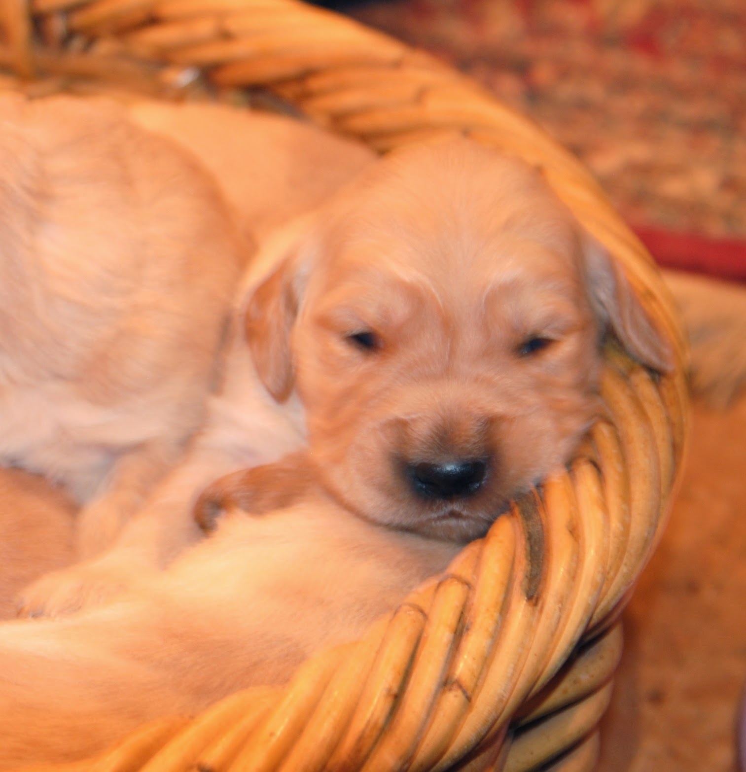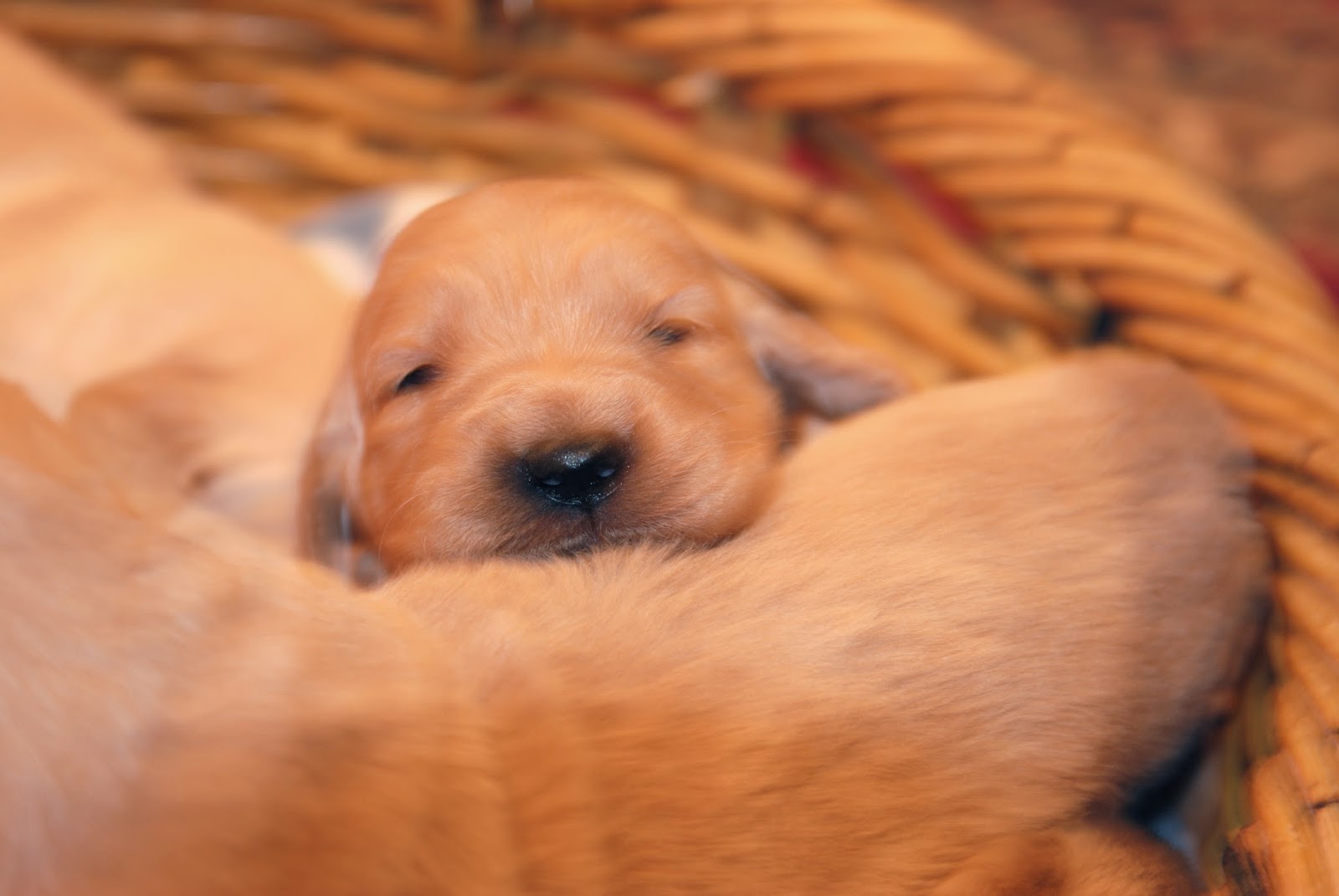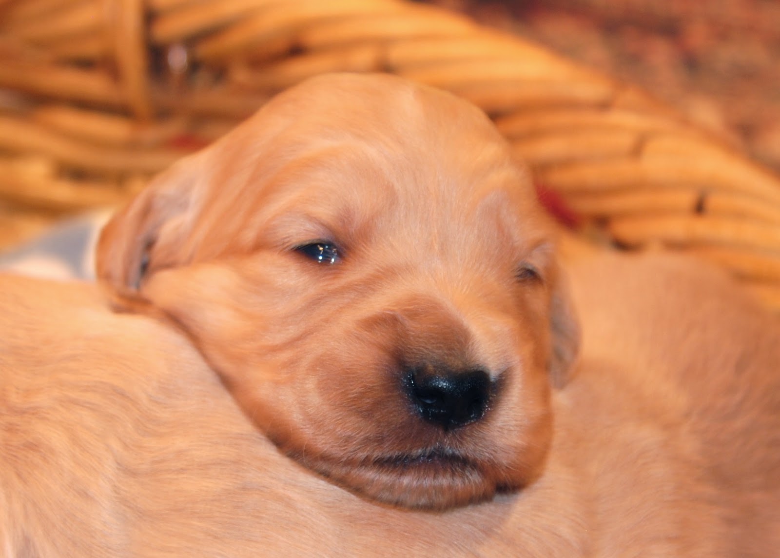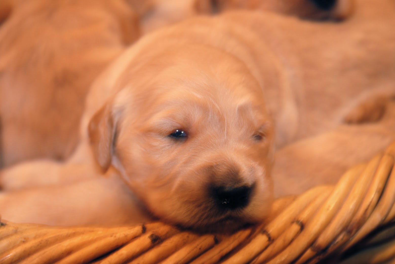 2 Weeks Old by Site Admin | Mar 21, 2015 | blog The basket is getting fuller this week! As you can see, eyes are starting to open, ears are starting to hear sounds, puppies are starting to sit up…and there’s BARKING too.