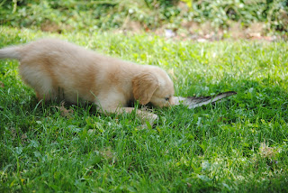 Well, our Bella x Fisher little man is 7 weeks old today. Can’t believe how the time has flown! He’s still a bit small (especially for one of our puppies!), but he’s certainly growing up to be a very fun, happy guy. He’s extremely affectionate and loves birds and running through the grass. We’re working on fattening him up so he can go to his new home.
