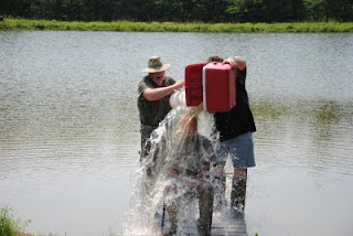 Congratulations to our own Ranger-Roo (Tidewaters Raising the Bar aka Ranger) for obtaining his Started Hunting Retriever title back in June. In HRC, when you get a title, you get a ritual soaking. This is Mark suffering through his dunking at the Keystone Waterfowlers test in Pennsylvania.
