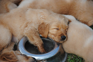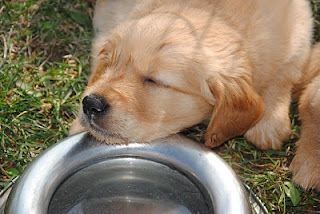 Training Day by Site Admin | Sep 25, 2011 | Training Day Today we went training along with the big dogs. We went for a ride in the truck, chased each other around the field, played with bumpers and got mauled by a whole bunch of people. It was such a warm day that we cooled off in our water bowl.