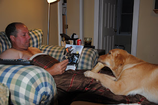 We’re enjoying a visit from Wendy and Ron Hunter’s dogs Leia and Reba. Leia is a Drake/Destiny daughter and Reba is a Leia/Rowan daughter. Both these girls are lovely and fun. Mark took them training yesterday, along with Ranger and Rowan. Today they’re hanging out with the other dogs on the deck. Reba has decided queen of the castle on the big rock in the yard is a very fun game.